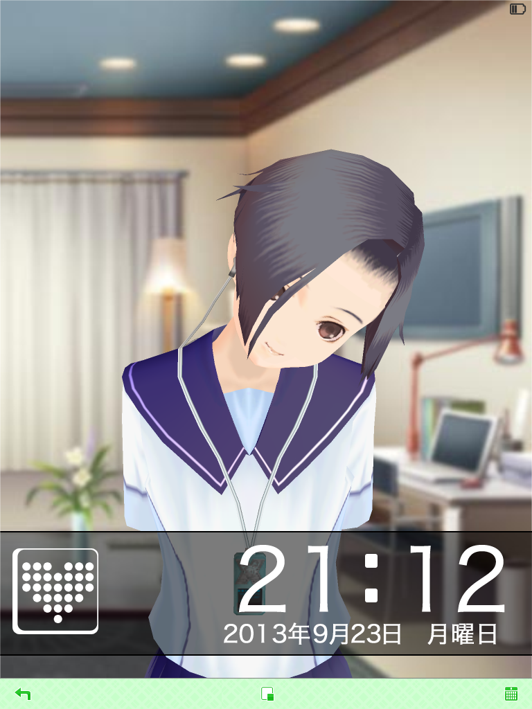 The app is not really a game as such. It features enlarged graphics from the first versions of the game (LovePlus and LovePlus+), and has features like a clock - where you can click and your girlfriend will tell you the time.